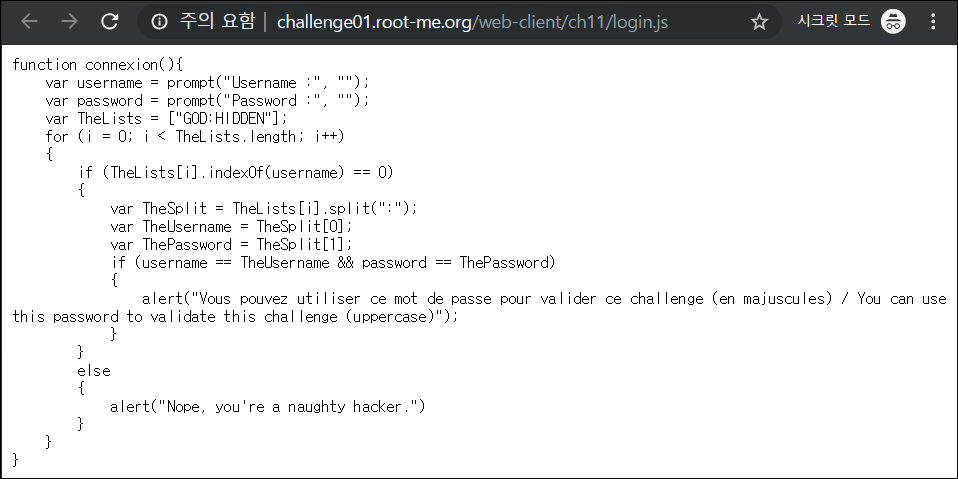 근데 또 TheSplit 배열은 TheLists 리스트를 문자열로 자른거네요. 그러니까 GOD이 아이디, HIDDEN이 패스워드가 되는 거죠.