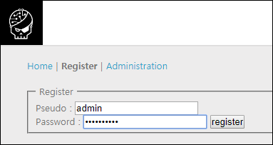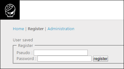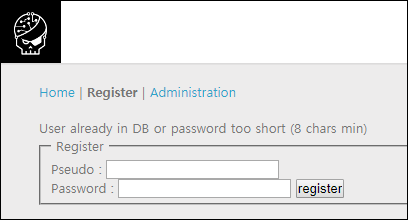 HOME은 빈 화면이고, Register에선 사용자 등록, Administration은 관리자 로그인 기능이 존재하고 있습니다.