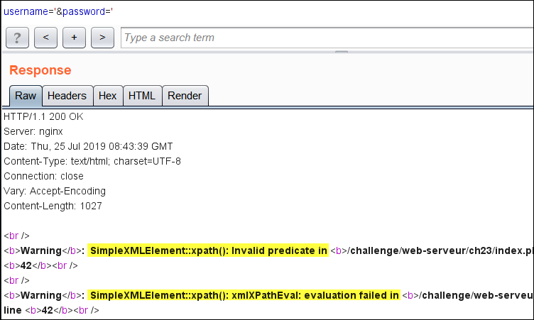 Xpath injection이 가능한지 여부를 판단하기 위해 특수문자를 입력해 보았습니다.