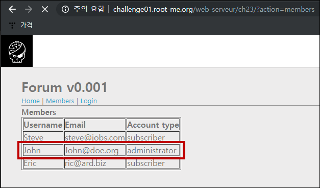 Members 메뉴를 클릭하면 계정 리스트가 보입니다. 그 중에서 두 번째 열의 John이 관리자군요.