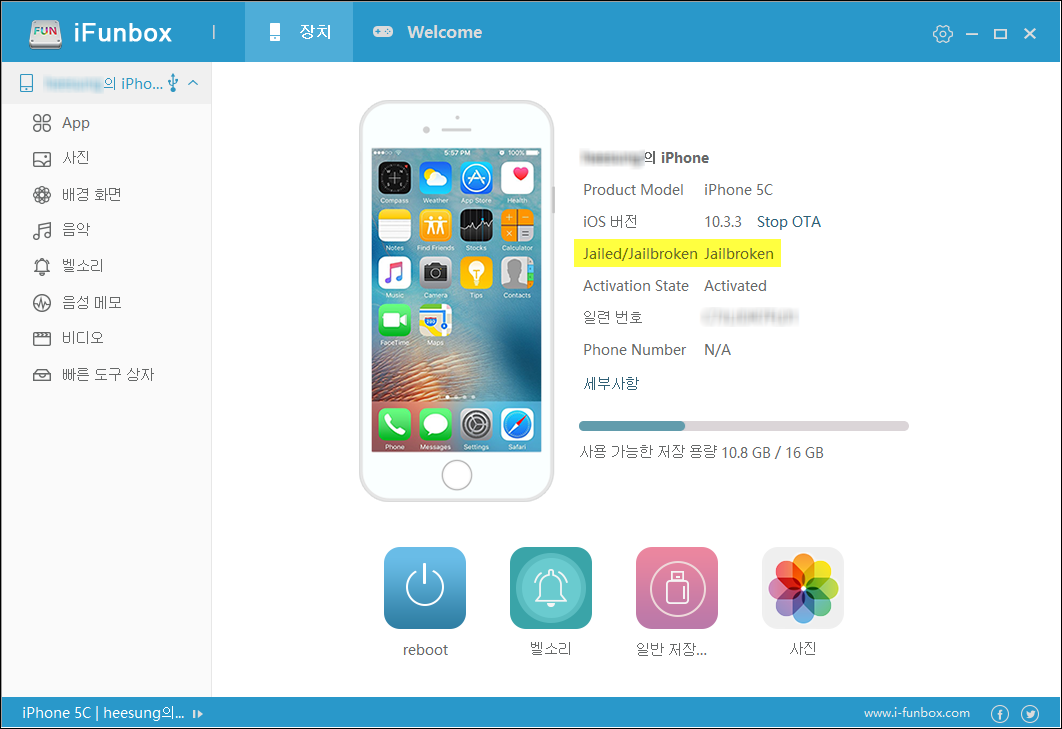 탈옥 후, iFunbox로 연결하면 [Jailed/Jailbroken] 항목에 "Jailbroken"이 쓰여 있어야한다.