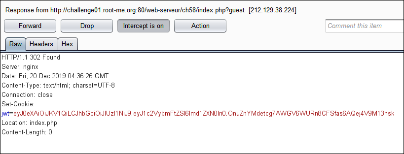 그래서 PAYLOAD 부분을 admin으로 변조하여 생성된 값을 guest 로 로그인 시 전송되는 jwt 쿠키 값에 삽입해보았습니다.
