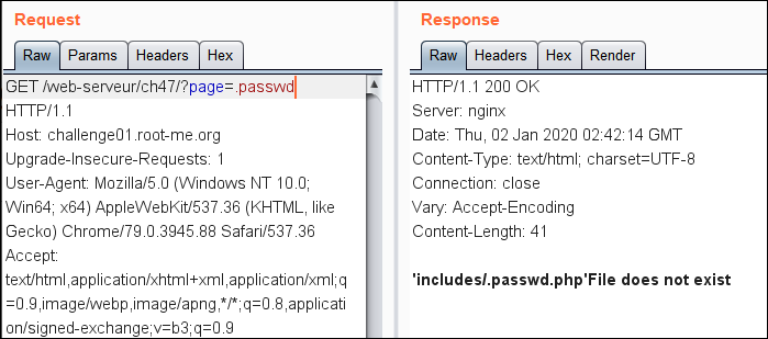 혹시 될까 싶어서 .passwd 파일을 바로 넣어 보았는데, .php가 자동으로 합쳐져서 없는 파일이라고 출력되는 것을 다시 한 번 확인할 수 있었습니다.