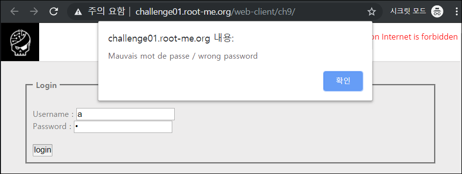 문제에 들어가보니, 로그인 폼이 있어서 그냥 아무 값이나 넣어서 로그인 시도를 해보았다.