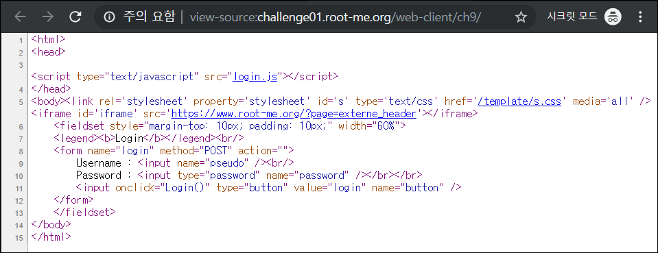 우클릭해서 소스보기를 해보았습니다!! 그랬더니 소스 상에 login.js 파일을 참조한다고 나오는군요.