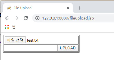 fileupload.jsp 페이지에서 test.txt 파일을 업로드한 후 [UPLOAD] 버튼을 클릭하면