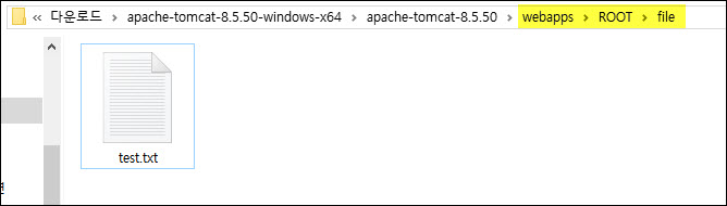 본인이 지정한 위치 저의 경우 Tomcat webapps/ROOT/file 디렉터리에 업로드 되는 것을 확인할 수 있습니다.