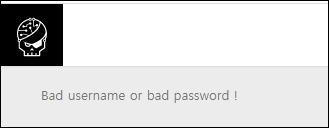 위에서 입력한 admin/admin의 결과 값은 Bad username or bad password!라고 로그인 에러가 출력됩니다.